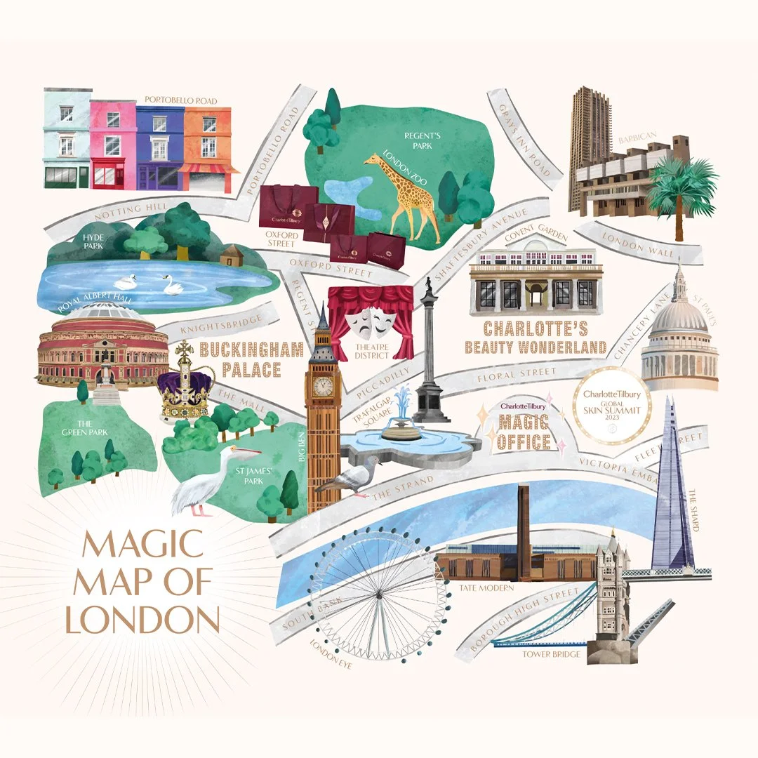 London map illustration for Charlotte Tilbury. Gifted to Influencers visiting from across the globe.